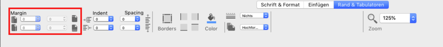 Um den Rand zu vergrößern oder zu verkleinern benutzt man die Felder „Margin“.