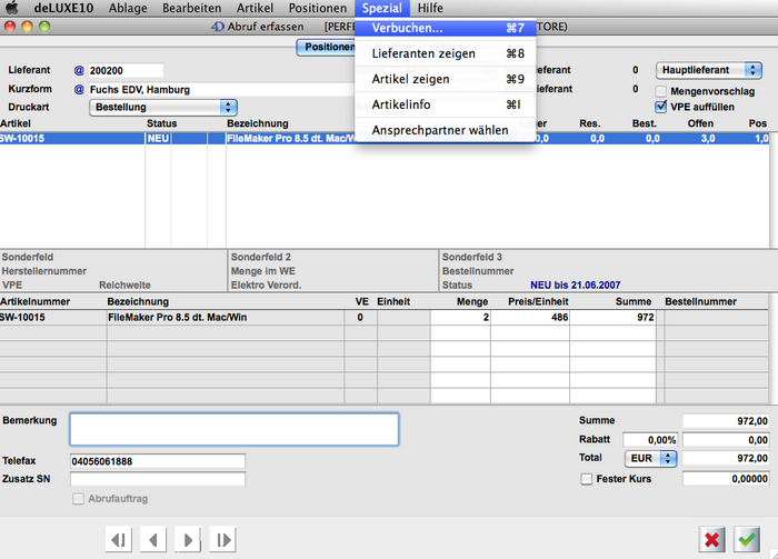 Um eine Teilbestellung (einen Abruf) einer Abrufbestellung vornehmen zu können, markieren Sie einfach die Abrufbestellung und wählen im Menü unter "Bestellungen Neu erfassen".
