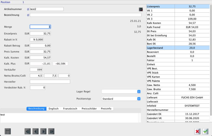• Sofern erforderlich den Beschreibungstext des Artikels ändern und Position mit dem OK-Symbol speichern.