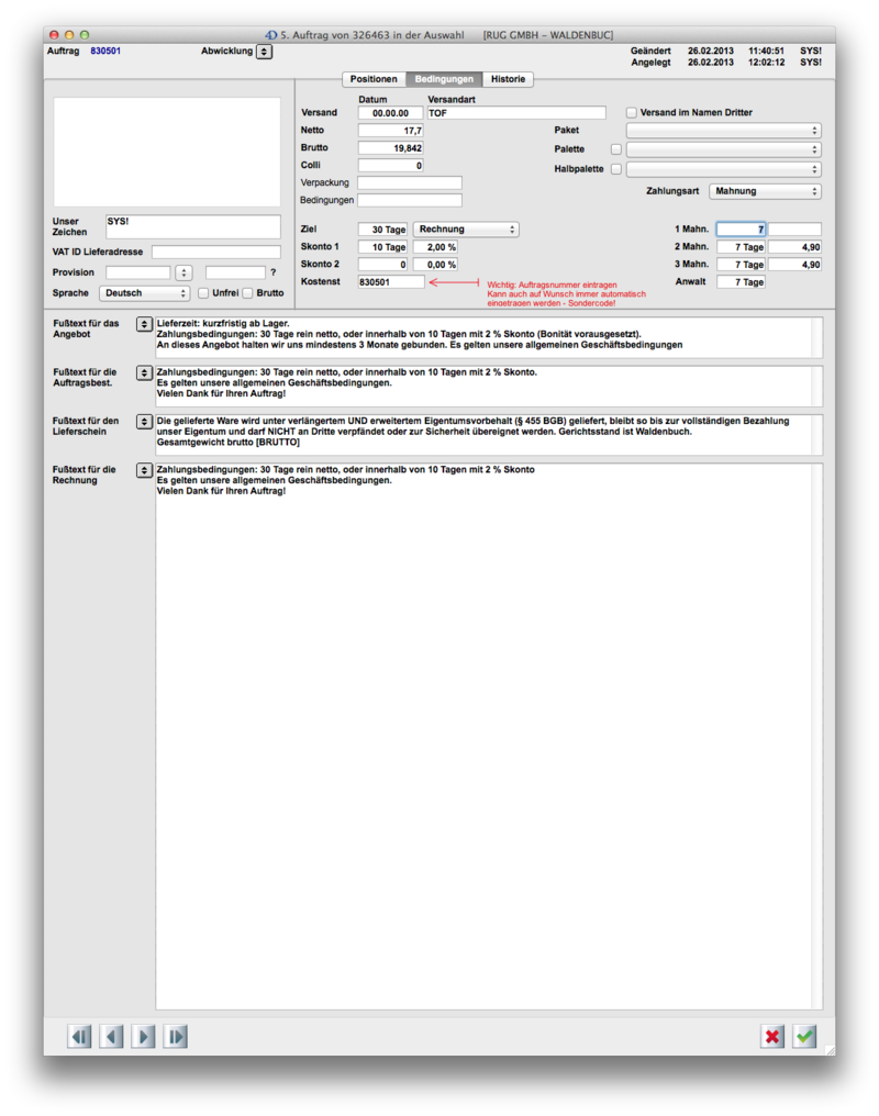 Muss sonst an einen Sondercode gehängt werden, wenn das automatisch bei Auftragsanlage erfolgen soll!