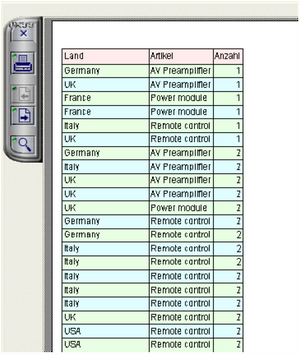 Im folgenden sehen Sie eine Vorschau für einen Bericht im Listenmodus mit wechselnden Hintergrundfarben.