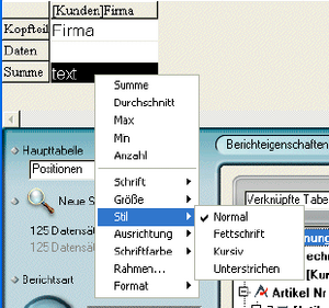 Sie können Schrifteigenschaften entweder über die Menübefehle oder Kontextmenüs im Schnellberichteditor definieren. Gehen Sie folgendermaßen vor: