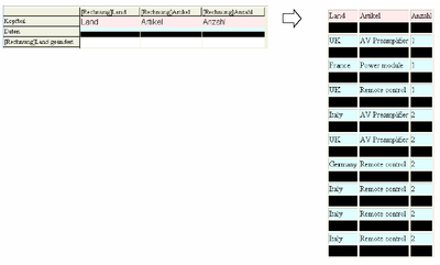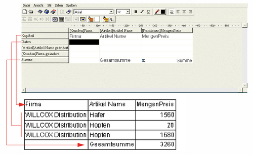 - Diese Zeile wird nach Angabe der Datenquelle bei Berichtsausführung mit entsprechenden Daten gefüllt.