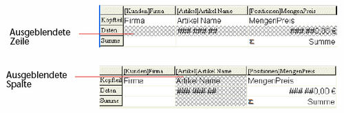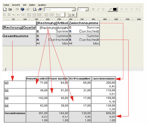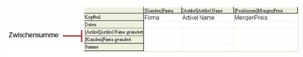 - Diese Zeilen erscheinen, wenn Sortier- oder Umbruchebenen festgelegt wurden. Sie enthalten eine Zwischenzeile in der Sie Berechnungen tätigen können.