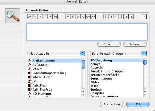 Mit den Schaltflächen können Sie Formeln in das Feld einfügen: