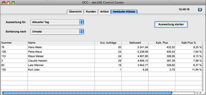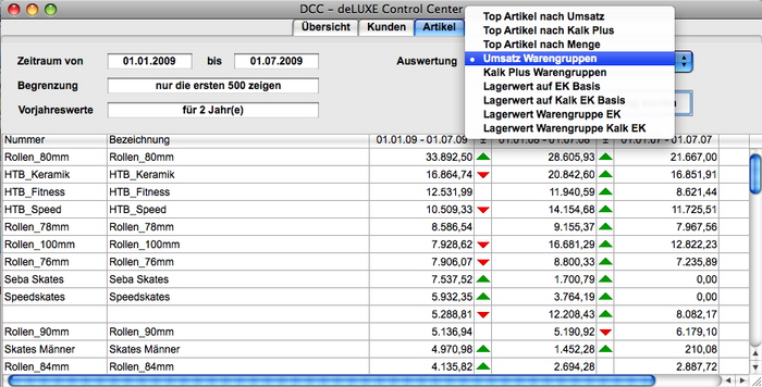 Das DCC ist ein Zusatzmodul in dem wichtige Informationen aus der Datenbank übersichtlich zusammengefasst werden. Außerdem sind einfache Auswertungen über Kunden und Artikel per Knopfdruck möglich. Die Auswertungen können als TAB Textdatei exportiert und in anderen Anwendungen weiterverarbeitet werden.