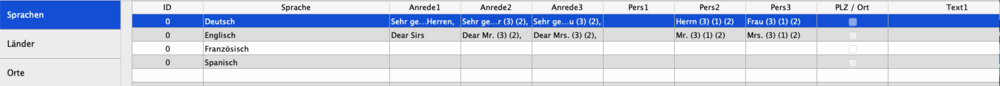 Da die Anreden im deLUXE-ERP automatisch gebildet werden, müssen Sie vorab für die verwendeten Sprachen die Anreden einmal definieren.