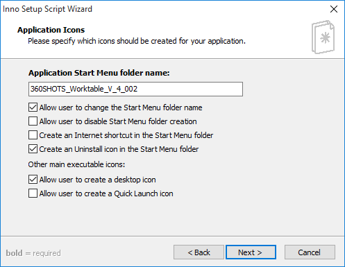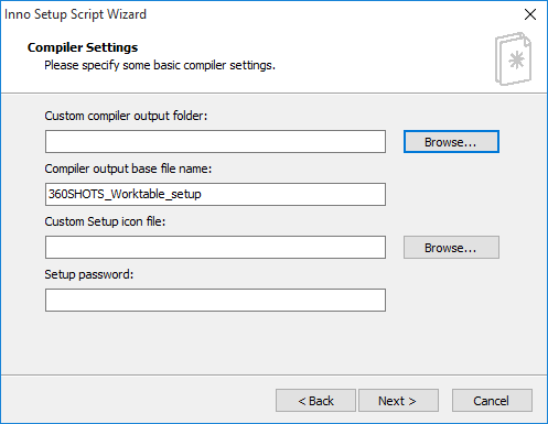 Custom Compiler Output Folder kann beliebig gewählt werden. Die erstellte .exe Datei wird in dem ausgewählten Verzeichnis abgelegt. Bei Custom Setup Icon File, eine .ico Datei einfügen.