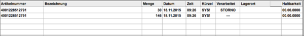 - wird ein Artikel mit dem selben (keinem) Lagerort zweimal gezählt, so wird der erster gezählte Artikel storniert und nur die zweite Zählung verwendet.