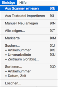 - In der Inventur Zählliste, unter Einträge, "Aus Scanner einlesen" auswählen.