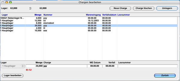 Wurde versehentlich das falsche Lager ausgewählt, kann durch Anklicken dieser Zeile der Vorgang rückgängig gemacht und ein anderes Lager selektiert werden.