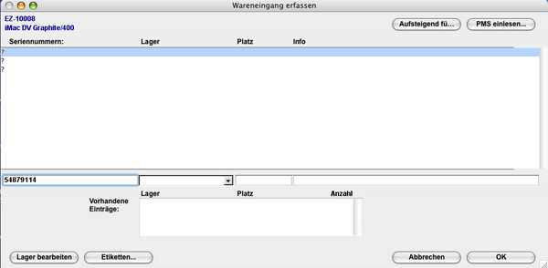 Weitere Informationen entnehmen Sie bitte dem Kapitel „Wareneingang / Seriennummern mit Bestellung“.