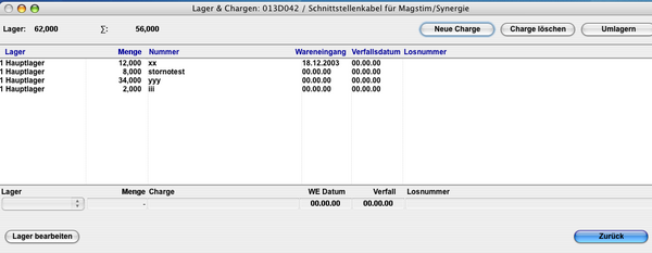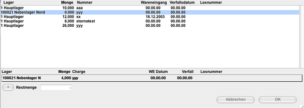 Mit einem Doppelklick auf das entsprechende Lager wird die gewünschte Menge abgerufen und im unteren Teil des Fensters zur Überprüfung dargestellt.