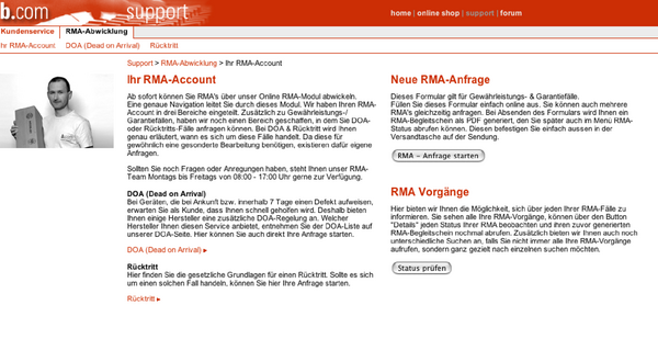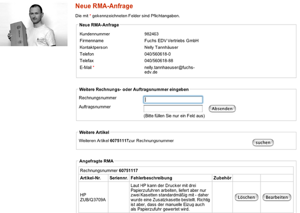 • Vereinfachte Abwicklung ermöglicht RMA-Erfassung auch durch Fremdpersonal (Call-Center).