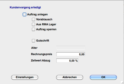 „Vorabtausch“ wählen Sie aus, wenn der Kunde ein Tauschgerät statt seinem Original zurückgeliefert bekommt.