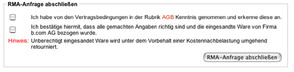 Um einen neuen RMA-Auftrag anzulegen öffnet der Kunde das RMA-Formular auf Ihrer Web-Site: