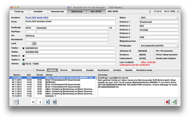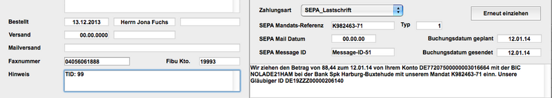 Als Besonderheit wird beim Umschalten auf diese Zahlungsart im Auftrag oder Angebot geprüft ob ein gültiges Mandat vorliegt (siehe Warnhinweis oben).