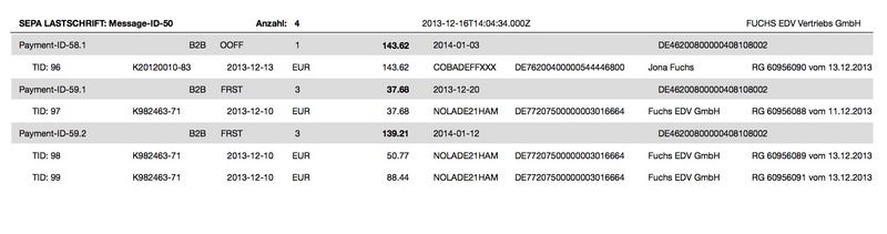 Innerhalb einer Datei werden alle Zahlungen nach Art und Fälligkeitsdatum zusammengefasst.