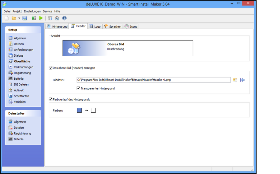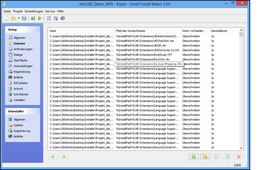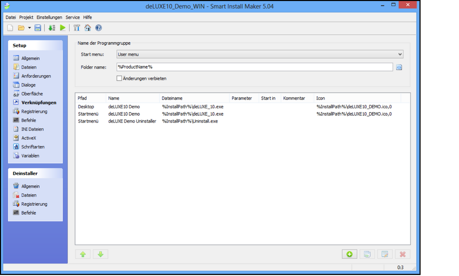 Erstellung einer Setup Datei für deLUXE Demo WIN in 12 Schritten.