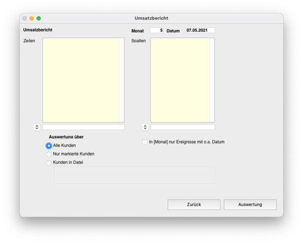 Die Umsätze aus dem gewünschten Zeitraum werden bei der Auswertung den entsprechenden Zeilen zugeordnet.